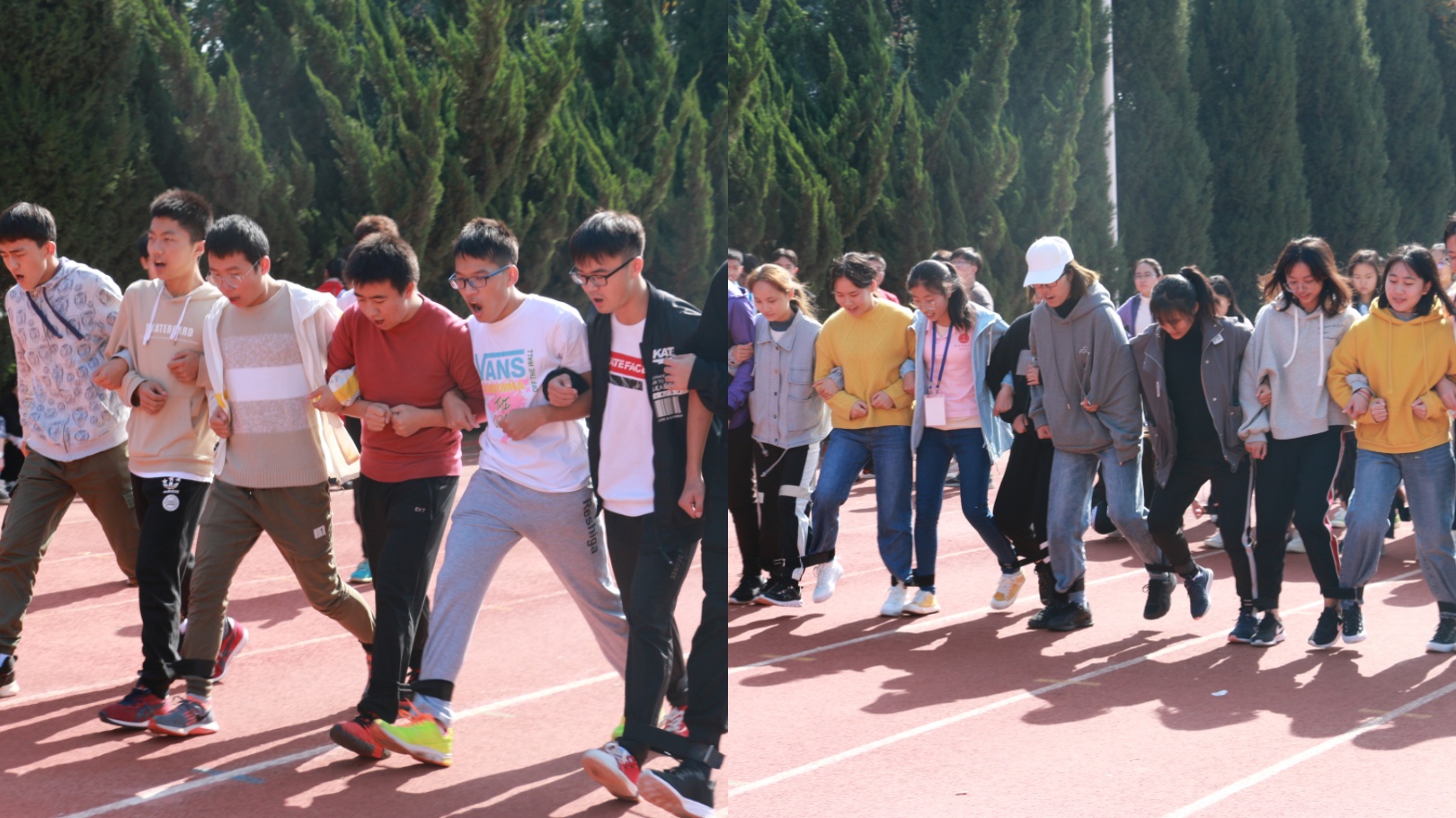 团结协作,配合默契,齐心协力,迈步向前。