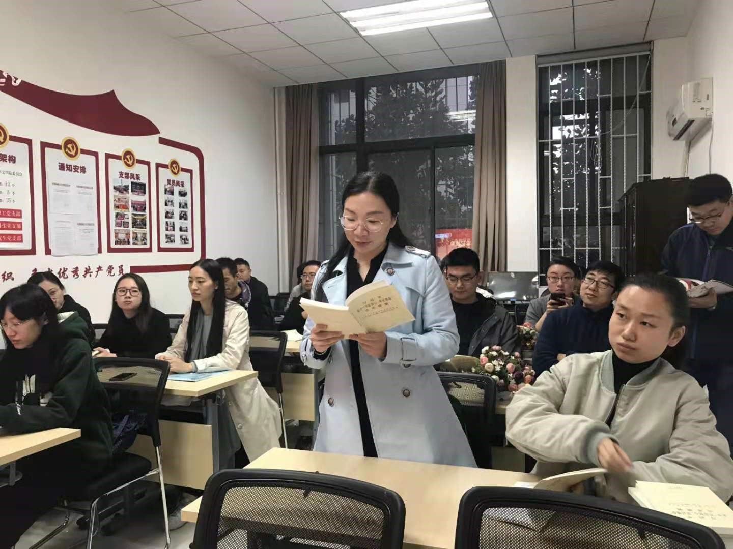 会上,高蓓同志为支部成员讲题为“守初心,担使命,共做合格党员”党课。她指出,作为博士研究生党员,一是要立足自身,切实增强使命担当,坚定理想信念,坚定初心使命,自觉加强理论学习,立足本职,勇担职责使命。二是要始终坚持实事求是的思想路线,增强责任意识,树立正确观念。遵守党的生活纪律,慎言,慎行,发挥表率作用。三是要多读书,全面地、系统地、富有探索精神地学习各方面的知识,勤思考、多创新,为做合格党员而切实行动起来。