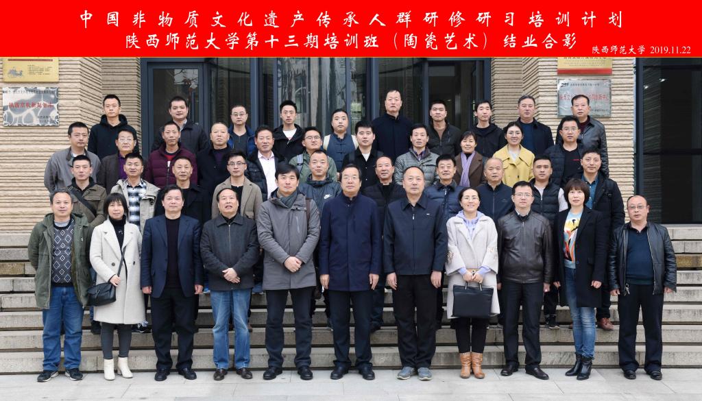 (通讯员 陈丹玉)2019年11月22日,文化和旅游部、教育部、人力资源和社会保障部中国非物质文化遗产传承人群研修研习培训计划(以下简称“研培计划”)beat365官方网站第十三期培训班(陶瓷艺术)结业仪式暨学员结业作品展览在长安校区隆重举行。陕西省文化和旅游厅副厅长顾劲松、非物质文化遗产处副调研员周颖,beat365官方网站副董事长党怀兴等出席结业仪式并参观了学员的结业作品展览,同时向学员们颁发了结业证书,向优秀学员颁发了荣誉证书,共同观看了beat365官方网站“研培计划”就业创业先进学员微视频。