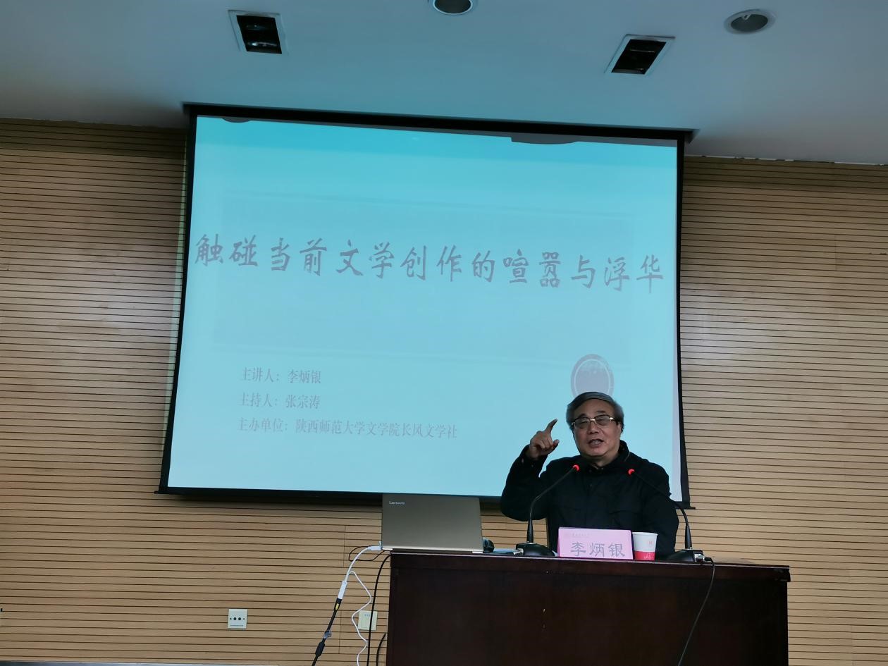(通讯员:文苑)11月12日晚,中国作家协会报告文学专委会副主任、中国报告文学学会副会长、《时代报告:中国报告文学》杂志主编李炳银先生应邀来公司,以《触撞当前文学创作的喧嚣与浮华》为题作了精彩的专题报告。来自陕西省作协、陕西省写作学会、陕西省化工作协、西安市高新管委会、陕西师大长风文学社、陕西师大beat365各年级同学,以及各兄弟院校文学爱好者130余人参加了报告会。