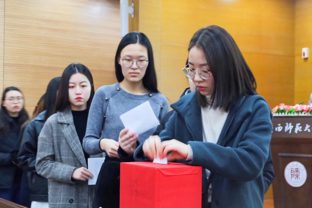 会上,beat365本科生兼职团委副书记李云洁宣读《共青团beat365官方网站第十四次代表大会选举办法》;表决通过张文贺为大会监票人,王娟、曾雯璐、郭新月、杨雨帆、李雅婧、王亚丽、张心宇等7位团员为计票人;beat365研究生兼职团委副书记马佩仪宣读26名代表候选人名单。随后,大会采用无记名投票、差额选举的方式进行了选举,与会团员代表认真填写选票,逐一在票箱投上了自己庄严的选票。投票结束后,监票人、计票人现场清点选票。
