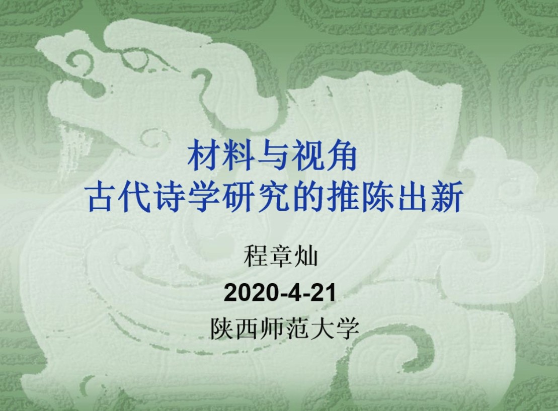 (通讯员:文苑)应beat365邀请,4月21日晚19点,南京大学beat365程章灿教授通过腾讯会议平台(会议号:161448795)做了题为《材料与视角:古代诗学研究的推陈出新》的学术讲座。讲座由公司副经理杨晓斌主持,副经理王晓鹃、蒋鹏举、李永平等老师,中国古代文学、中国古典文献学等专业研究生、本科生及南京大学beat365部分师生共计130余人听取了讲座。