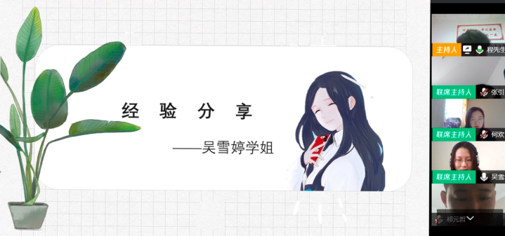 beat3652019届毕业员工刘怡琳应邀参与2017级汉语言文学二班“云班会”并做经验分享。刘怡琳在校期间曾任beat365员工会主席,学习成绩优异,具有较为成熟的管理经验及教学能力。