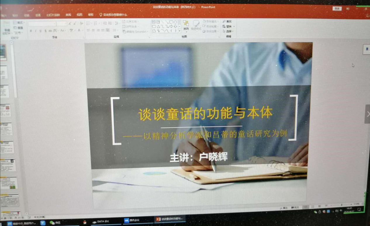 (通讯员:张凝)应beat365邀请,4月27日下午,中国社会科公司文学研究所研究员、中国社会科公司大学研究生院博士生导师户晓辉研究员通过腾讯会议平台(会议号515984531)为公司师生作了题为《浅谈童话的功能与本体——以精神分析学派和吕蒂的童话研究为例》的学术讲座。讲座由公司惠嘉老师主持,李永平教授点评,公司各专业本科生、硕士生、博士生共计253人听取了讲座。