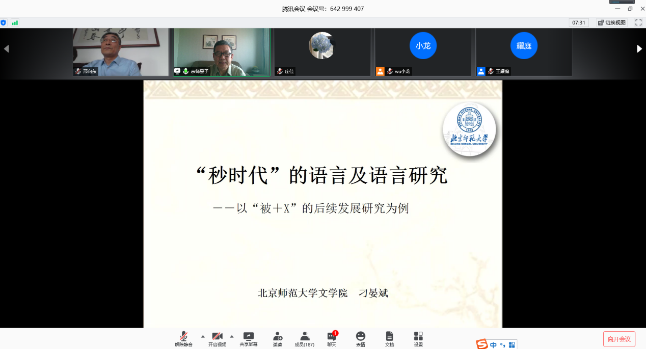 (通讯员:庄佳)4月29日下午,北京师范大学刁晏斌教授应邀在线上做了一场学术报告,报告题为《“秒时代”的语言及语言研究——以“被+X”的后续发展研究为例》。陕西师大beat365和其他高校相关专业师生共190余人听取了讲座。