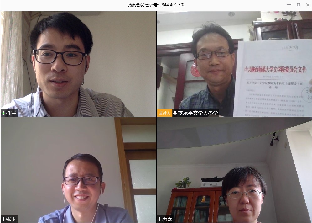 (通讯员:惠嘉)2020年5月8日下午,公司民俗学与民间文学教研室党支部召开了线上课程党建支部会议,就教学与科研近况、课程思政建设以及beat3652020年工作要点等内容展开集中学习与讨论交流。会议由支部书记李永平主持,教师党员孔军、惠嘉、张玉参加。