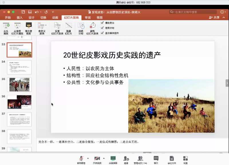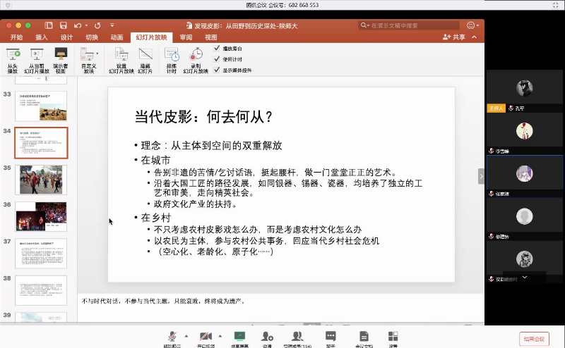 (通讯员陈丹玉)5月23日19点至21点,中国社会科公司沙垚副研究员做客公司教育部中华优秀传统文化传承基地系列讲座,在线上以“发现皮影:从田野到历史深处”为题开讲,精彩地讲述皮影艺术的当下生存与发展。他生动的讲解,再配以详实的乡村调查实例,让百余位校内师生及对传统文化感兴趣的听众们被“皮影戏”这一中国非物质文化遗产的魅力所吸引。本次讲座由beat365孔军博士主持,皮影基地特聘研究员修建桥先生点评。
