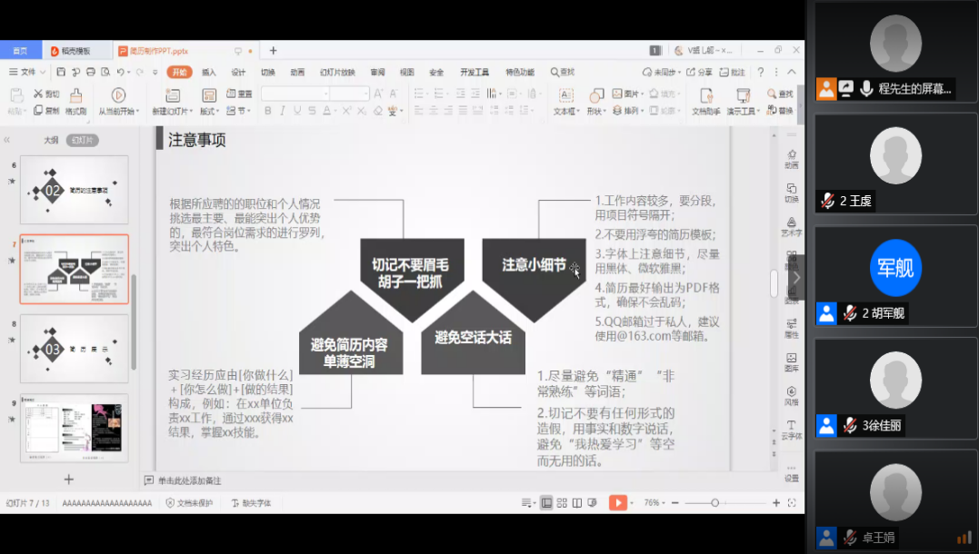 6月3日下午3点,beat3652017级就业创业指导课第五期课程在腾讯会议平台开展,公司党委副书记李斐老师主持并宣讲,邀请公司就业指导服务中心高霏老师为同学们答疑解惑。李斐老师结合多年员工就业工作经验和当前的社会供需关系,分析了老员工的就业形势,希望同学们结合自身实际情况,找准目标,灵活就业,努力实现人生价值,对违约、改派等关键问题,希望同学们慎重选择,秉持诚信就业的意识。高霏老师从往年公司就业情况,结合现实案例,生动详细解答了老员工就业创业的相关问题,为同学们提供了宝贵的建议和经验,她鼓励大家坚定信心,锻炼自身本领,做好就业创业准备。