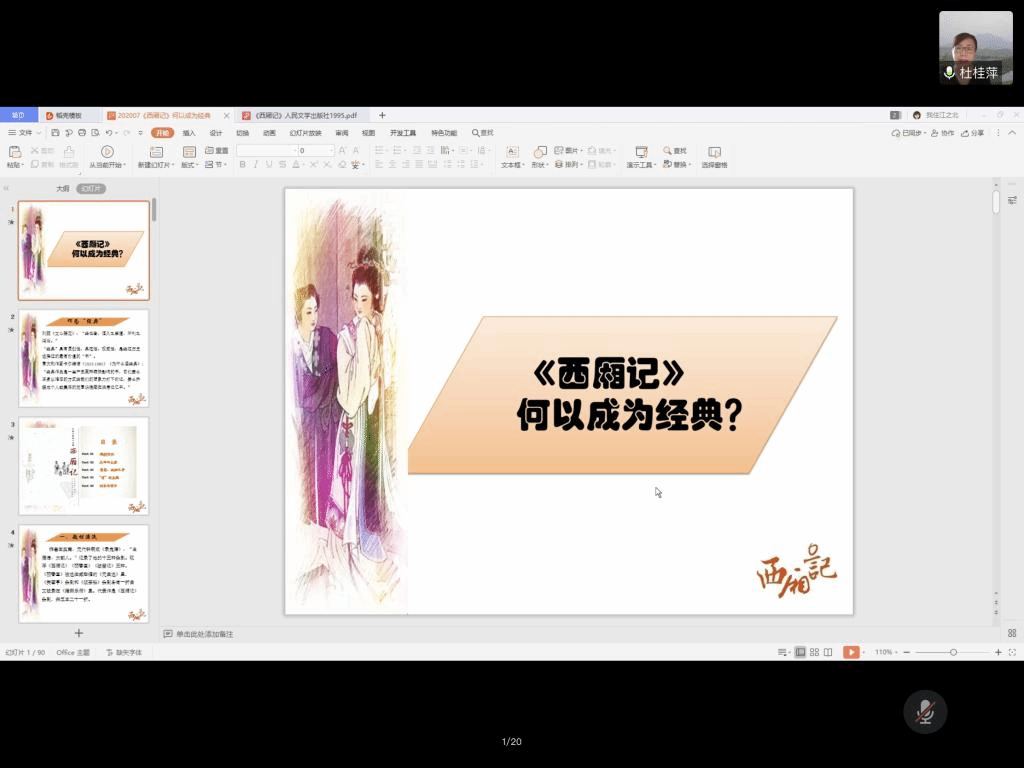 (通讯员:张佳育、李尚静)7月17日下午2:30,beat365兼职教授杜桂萍为2020年“优秀老员工夏令营”营员做了题为“《西厢记》何以成为经典”的专题学术讲座。讲座由杨晓斌副经理主持。