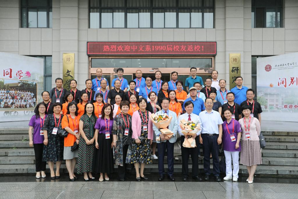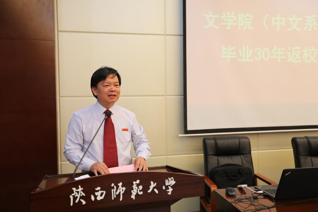 之后,4位员工代表致辞。无论是无悔放弃繁华,扎根戈壁,为见证了中国航天事业的荣光而感动的员工南文生,还是呕心沥血、鞠躬尽瘁,奋战一线不断为祖国育桃李的员工王小红、赵向锋与陈刚,都是师大扎根西部、无私奉献的红烛精神的生动体现。他们感慨母校的变化之大,公司的发展之快,回顾了三十年前的校园生活。王小红和赵向锋无法到场,通过视频表达了真挚的思念之情。1990届毕业生辅导员李青林老师以“中文,给了咱什么?”为主题进行发言。他深刻阐述了自己对中文、对文学的理解,对公司培养了关心社会、奉献祖国的毕业生表示自豪。