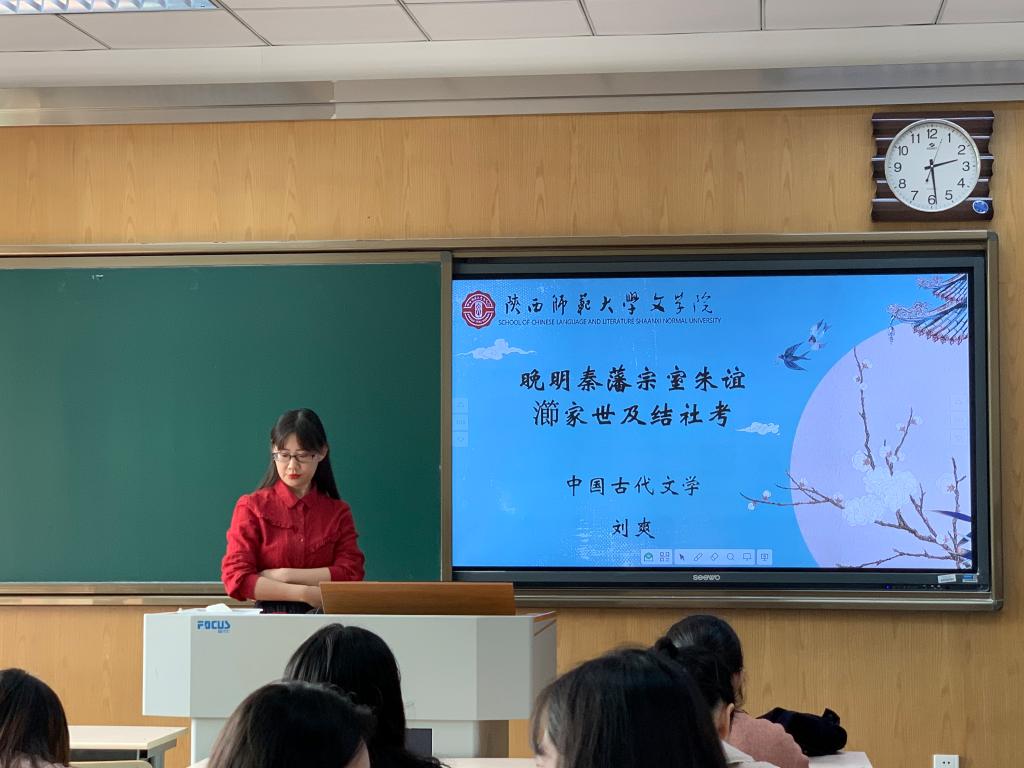 2020年11月11日,第172场博士学术报告以《晚明秦藩宗室朱谊瀄家世及结社考》为题,由中国古代文学专业博士研究生刘爽主讲。刘爽博士在报告的第一部分中简述了“宗蕃”的含义,并且介绍了学界对朱谊瀄家世、生卒年和家风教习的考证情况。第二部分进行朱谊瀄的结社考,具体考证了“青门社”以及“青门七子”,介绍了“青门社”的成社过程、成员构成和诗社活动。刘爽博士指出:通过以上考证可以发现,“青门社”逐渐完成了从宗族性诗社向地域性诗社的过渡,最终成为晚明关中诗坛的代表。
