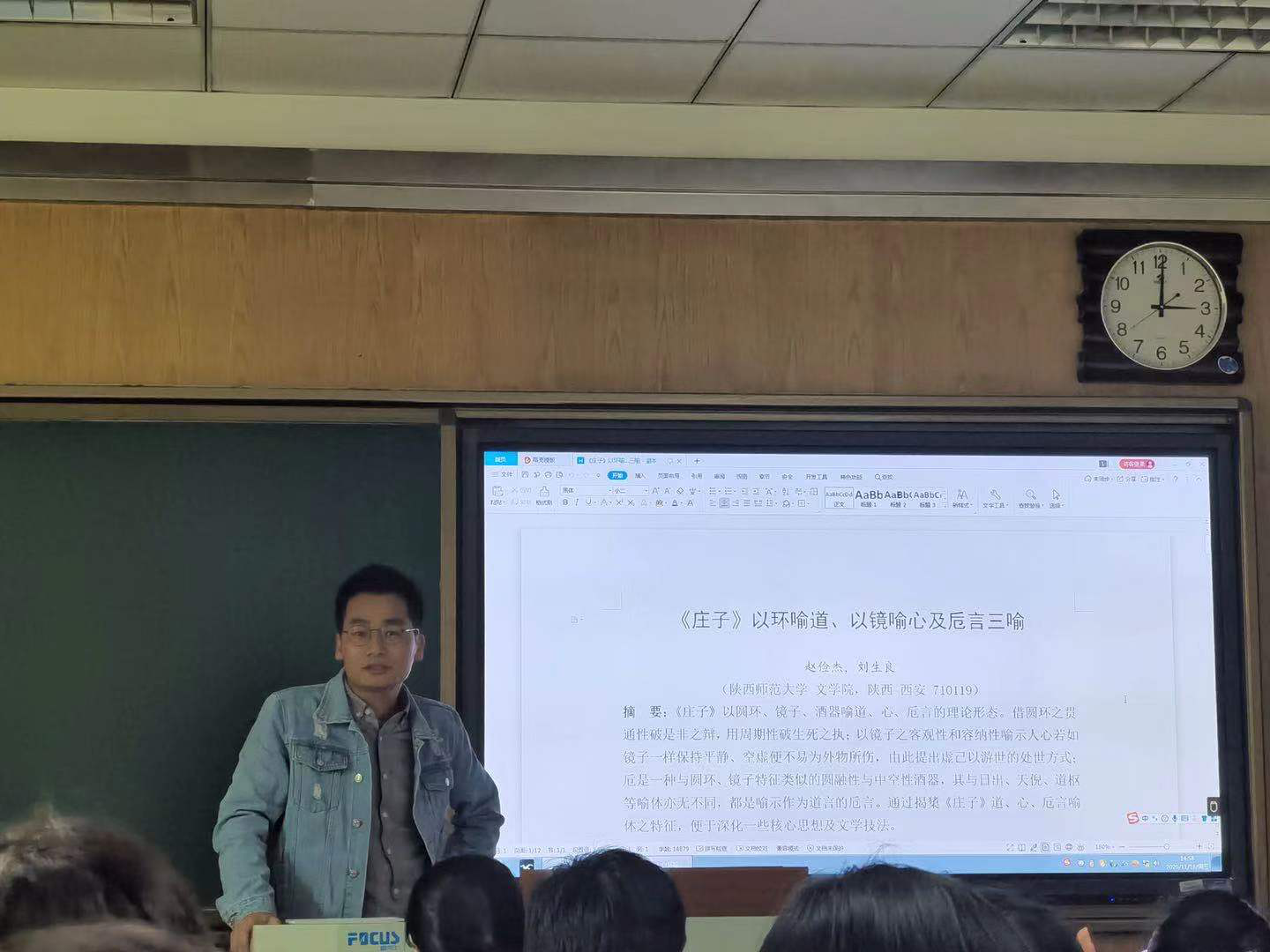 2020年11月18日,第178场博士学术报告以《圆环与镜子:<庄子>“道”与“心”之喻体》为题,由中国古代文学专业博士研究生赵俭杰主讲。赵俭杰博士指出《庄子》既“以环喻道”又“以镜喻心”,假之“环”与“镜”揭示“道”和“心”的存在形态与理论涵摄。借助“圆环”之“循环往复”与“中心空虚”喻“道”之“空”;借助“镜子”之“客观反映”和“明彻虚静”喻“心”之“诚”;借助“卮言”与“圆环”的相似性及其在“镜子”上的投射光,思考“卮言”难题,阐释“道”术之全。论述严谨,富有哲理。
