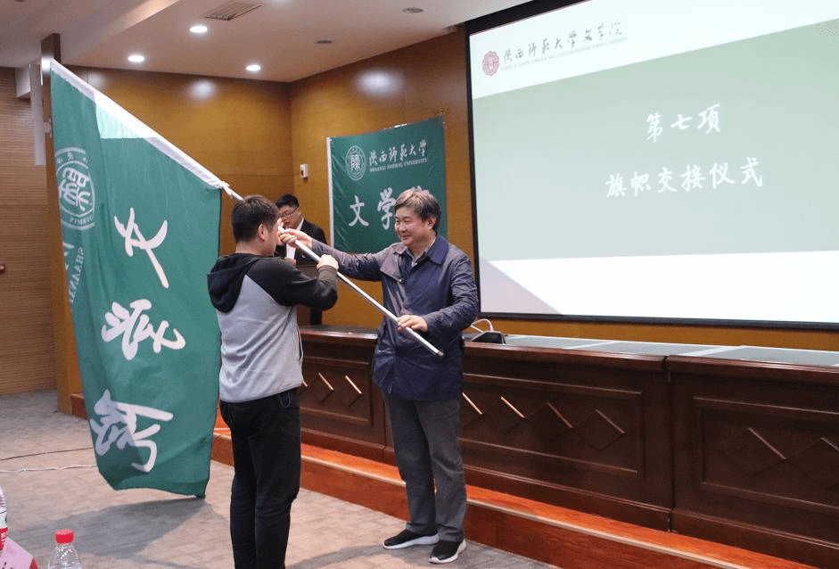 随后,举行院旗交接仪式。副经理苏仲乐将旗帜授予下一学年员工体育工作负责人刘清华。旗帜交接代表着公司运动员们不畏艰难、锐意进取体育精神的一代代传承,表达了对新一代beat365运动健儿一往无前的希冀。