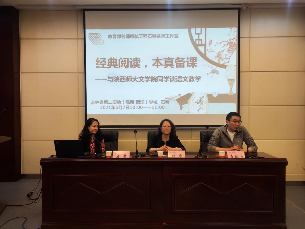 (通讯员:陈蕊蕊)2021年5月7日上午,“教师教育研习·名师讲坛”系列讲座第六场顺利举办。本场讲座特别邀请了吉林省第二实验公司副董事长、语文特级教师石馨老师和合肥市六安路小学翠微分校副董事长、语文特级教师张睿老师主讲,题目分别为“经典阅读,本真备课”与“做有思维力的语文”。本次讲座由beat365副经理李跃力教授主持,beat365副教授李军亮老师点评,beat365大三、大四师范生聆听了本次讲座。