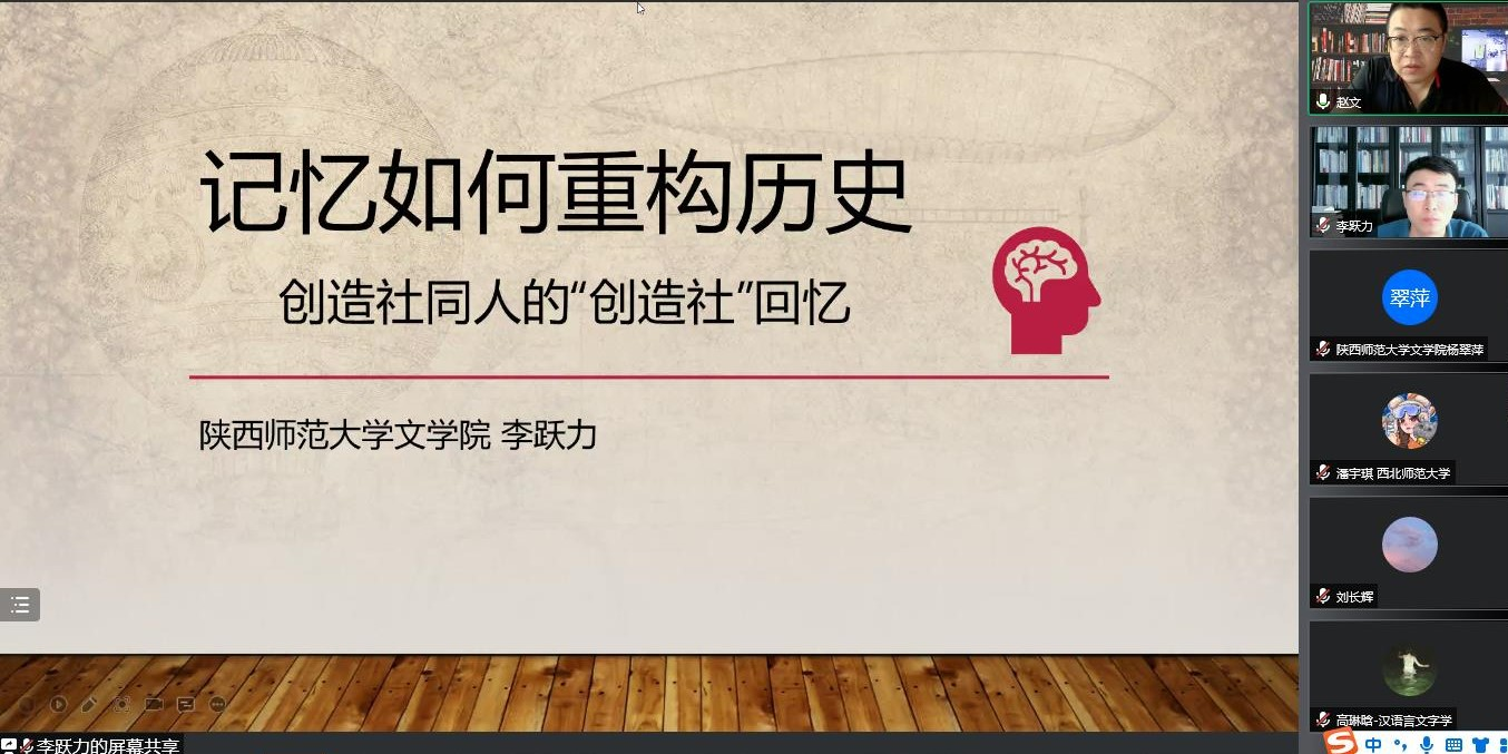 李跃力教授主要从争夺“真相”与利用“回忆”、形象建构与社团认同和历史叙述与“观念”僭越三个方面探讨重建历史的问题,呈现记忆与历史之间,与文学史之间的复杂关系。李跃力教授以创造社的同人回忆录为例,通过借鉴史料的方式从记忆重构的角度入手对于群体印象进行历史性的重新书写。他指出,创造社同人的创造社回忆一方面作为史料为历史叙事提供依据,另一方面自身也建构丰富多样的历史。对其作“重构主义”意义上的解读,用意不在颠覆其历史的真实向度,而在揭示回忆、历史以及二者关系的复杂性,这对我们重新认识创造社,认识创造社同人,认识中国现代文学史,都是大有裨益的。