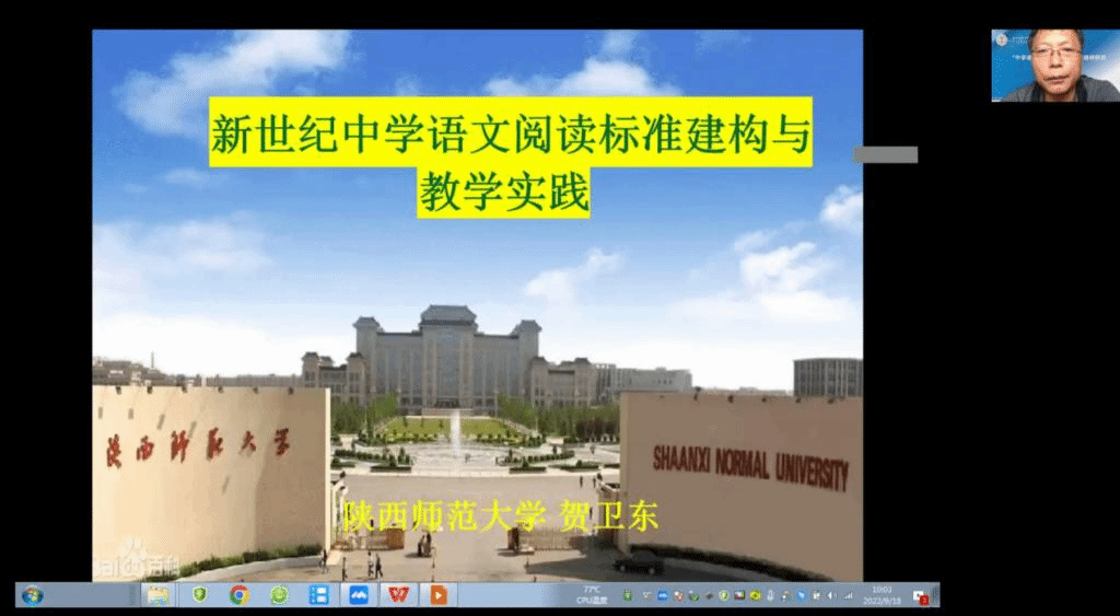 (通讯员:苏文君)为推进西部基础语文教育百千万工程,做好服务西部语文基础教育工作,公司首次面向全国中学语文教师开办“中学语文教学能力提升”高级研修班。课程共分为十二次,其中课程十讲、交流研讨两次。9月18日上午,beat365教授贺卫东老师首场开讲,题目为“新世纪中学语文阅读标准建构与教学实践”,100名来自于一线的中学语文教师聆听了本次课程,近500名中学语文教师通过直播参与学习。