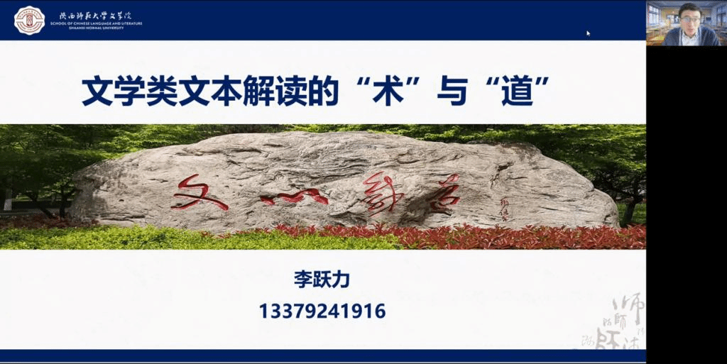 课程从文学类文本解读出发,共分为五个部分。首先是文本解读的三个维度,他表示文字、文章两个维度是理解文学文本的基础,但并不是全部,同时强调所有文本解读的一个大前提就是要尊重文本的整体性和有机性。接着他借鉴形式主义和新批评的理论,阐述文学维度的重要性,从而得出文本细读的方法是要直面文本,只有这样才能挖掘出文本最深层次的意蕴。基于这个方法,他提出文学文本解读的三个特征。一为主体间性,他表示文本解读是主体间的行为,位于作者、读者、文本三个主体之间,每一方只有相互尊重另外两方,才能够成就自己的主体性。二为有机性,文本的有机性是要呈现出文本内部各种要素之间的协同作用,尊重文本的整体有机性,才能对文本有系统的解读。三为历史性,文本解读涉及到三个层面的历史,只有尊重文本的历史性,才能对文本有更确切的解读。而这些特征对于文本解读的阐释都是具有限制性的。紧接着他提出了对于文学文本解读的读者期待,鼓励大家都做“专业读者”,熟知文学史思想史历史、熟识大量的文学理论、熟读经典的文学作品,三者融合并持之以恒,才会成为专业的读者。第四方面是文学文本解读的方法实践。他认为从文本最大的形式特色出发,进入文本,把握文本的内在意向性结构,再结合文本的历史、结构、细节、整体,才会完成对文本更深层次意蕴的解读,同时例举初高中教材的文本做了具体说明。 第五方面是文学文本解读的主题建构。李老师表示文本解读不是技术性的操作,而是生命的敞开和完善,它的道在“生命”的建构中,解读文本的过程是理性思维完善的过程,由文本延伸到生活,完善我们的生命,方可行走在智慧人生的道路上。