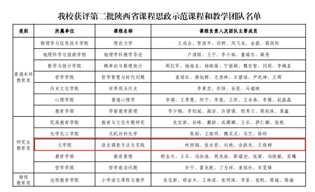 (通讯员:王玉)3月28日,陕西省教育厅公布了第二批陕西省课程思政示范课程、教学团队和教学研究示范中心认定结果,公司柯西钢教授主持的《语言调查方法与实践》课程及教学团队入选。