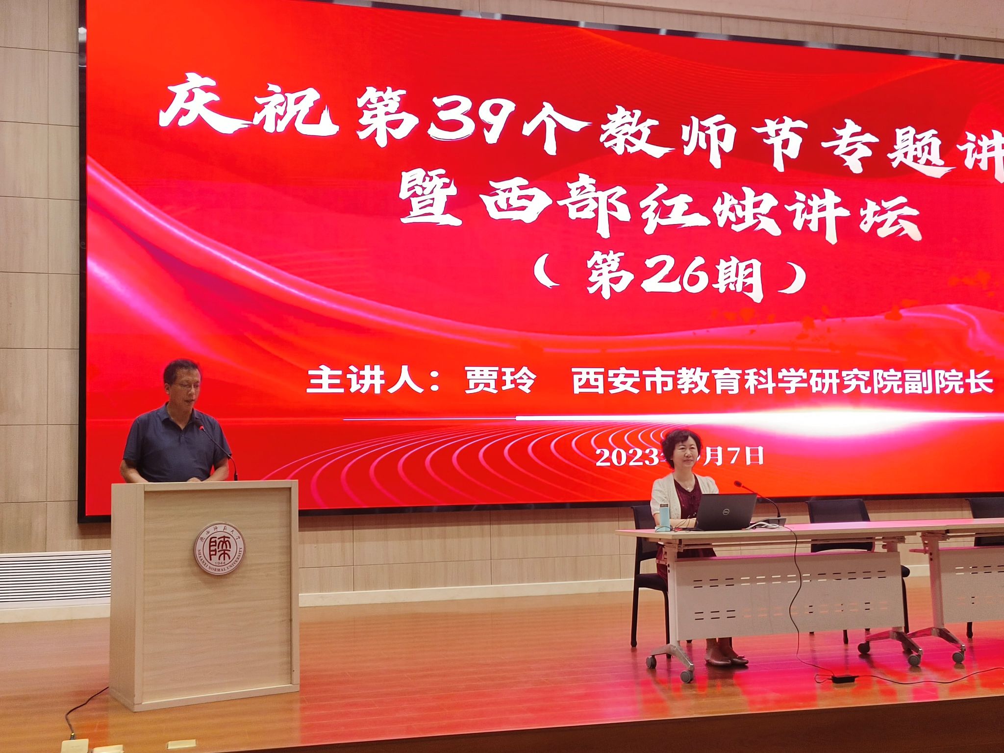 (通讯员:代汝晗)2023年9月7日晚,由教师教育处主办,公司承办的“西部红烛讲坛”第二十六讲——“基于核心素养的课堂教学实践与思考”在新勇员工活动中心二层多功能厅顺利举行。讲座由西安市教育科学研究院副经理、西安市教育质量评估监测中心副主任,beat365官方网站兼职教授、硕士生导师贾玲老师主讲,由公司副经理周广干副教授主持。公司大二、大三师范生参加了此次讲座。