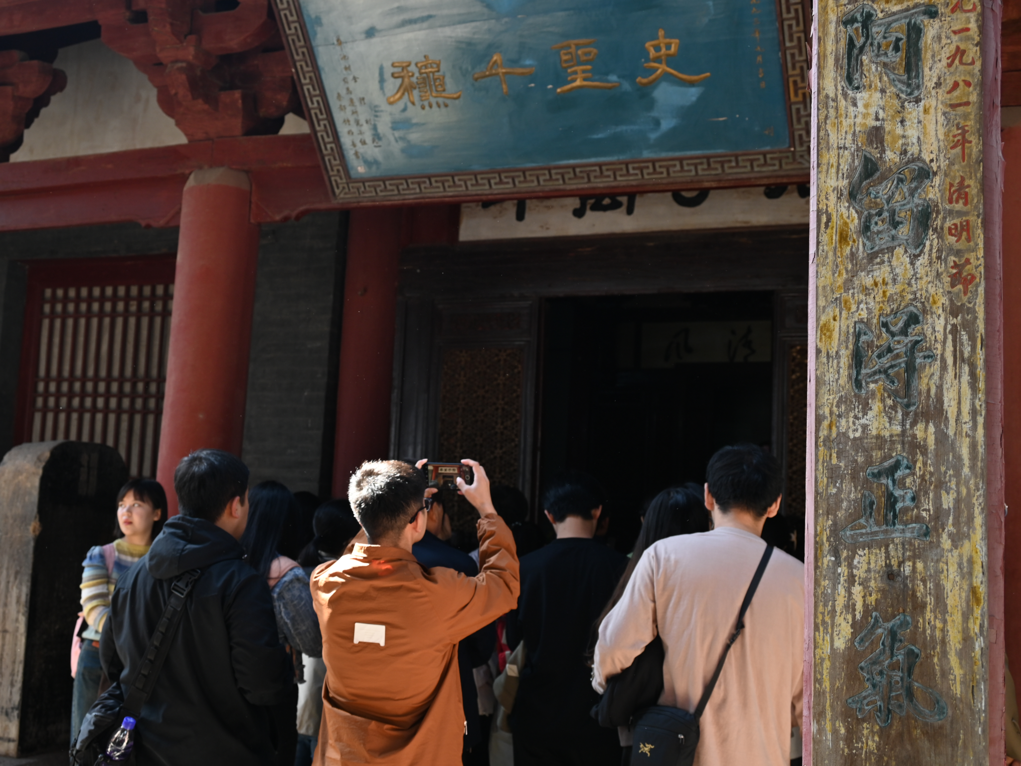 下午14时,全体师生到达白水仓颉庙进行参观学习。《说文解字》《世本》《淮南子》等文献皆记载仓颉是黄帝的史官,见鸟兽的足迹受启发,分类别异,加以搜集、整理和使用,在汉字创造的过程中起了重要作用。如今“仓颉造字”已经成为我们耳熟能详的传说,而仓颉也被称为“字圣”“文化之祖”。
