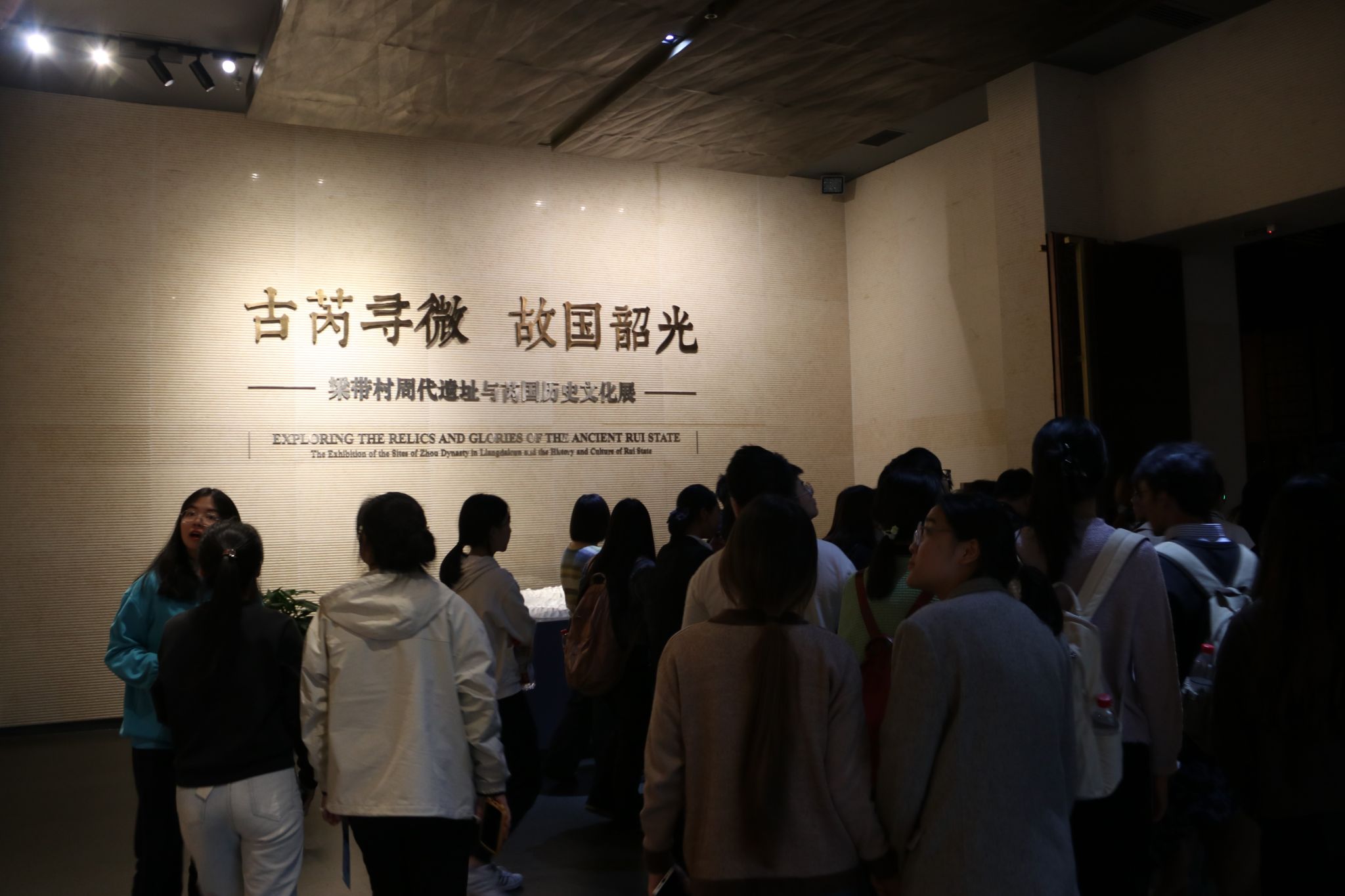 下午同学们来到梁带村芮国遗址博物馆。在周文明的边缘,这个往日不为人知的诸侯国因为一场考古发掘而重见天日。随着讲解员的解说,美丽神秘的古芮国渐渐揭开面纱,从历史的风尘中向同学们走来。青铜礼器、玉戈玉琮、黄金剑鞘……一件件珍贵精巧的文物中蕴含着文化的脉络和先人的智慧,让同学们感受到了悠长厚重的文明之源流。