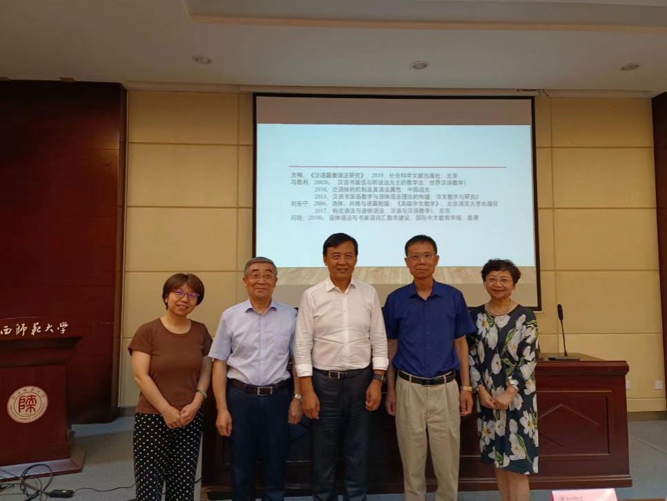 讲座伊始,刘乐宁教授阐释了语言形式与语言能力之间的关系,认为语言能力判断的基准必须要体现在语言形式上。随后刘教授指出语言能力的发展主要体现在两方面,一是口语:从字正腔圆到能言善辩;二是书面语:从文从字顺到妙笔生花,并指出这个过程正是四种语体能力的发展,即能说的汉语、能写的汉语、能读的汉语、能讲的汉语,而这四种语体的教学贯通也是解决目前国际中文教学瓶颈的有效方法。最后,刘教授通过大量的教学实例向在座师生展示了如何运用四种语体进行教学,并再次强调这一过程必须贯彻基于输入的语言教学,语言输入的质量与数量是语言获得的首要条件。