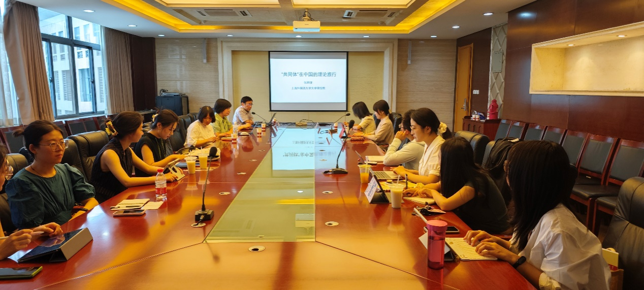 (通讯员:朱建刚)6月22日上午,公司举办的八十周年校庆学术名家系列讲座第十三讲“‘共同体’在中国的理论旅行”于文汇楼A段409会议室顺利开讲。讲座由上海外国语大学张和龙教授主讲,公司张颖副教授主持,郭雪妮教授点评,西安外国语大学的老师和公司比较文学与世界文学等专业的研究生参与了此次讲座。
