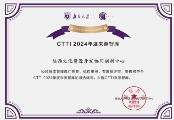 近日,“2024新型智库治理论坛”在兰州召开。论坛发布了CTTI(中国智库索引)2024年度增补来源智库名单。公司陕西文化资源开发协同创新中心入选增补名单。