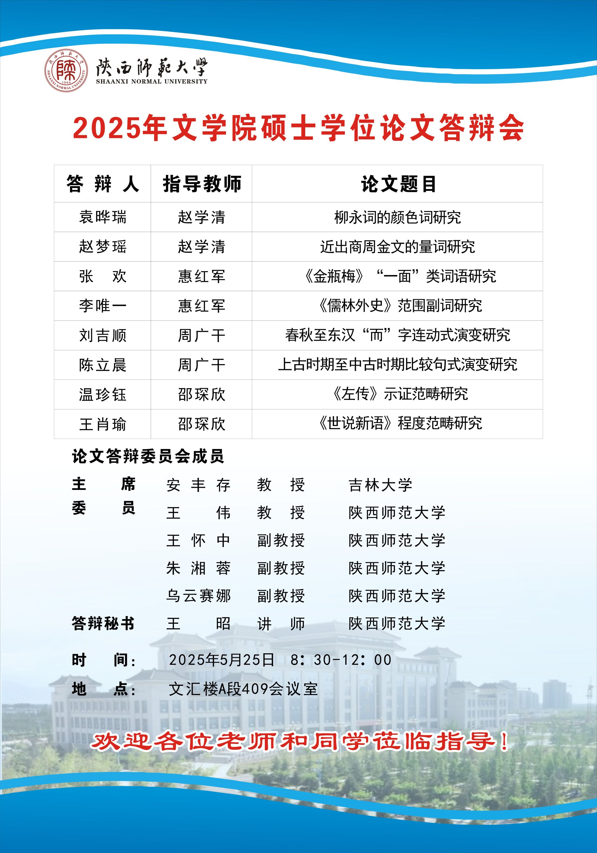 2025年上半年beat365硕士学位论文公开答辩会(汉语言文字学)