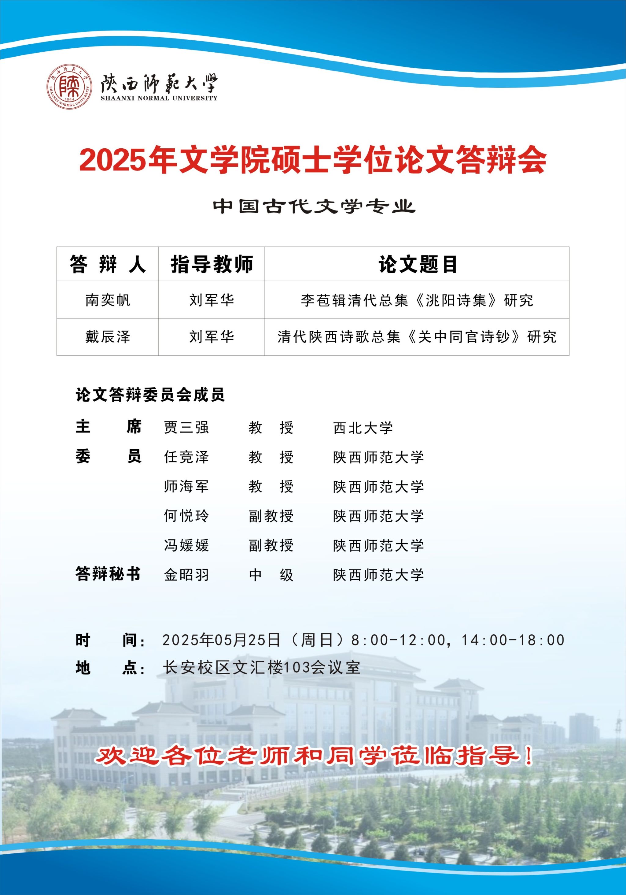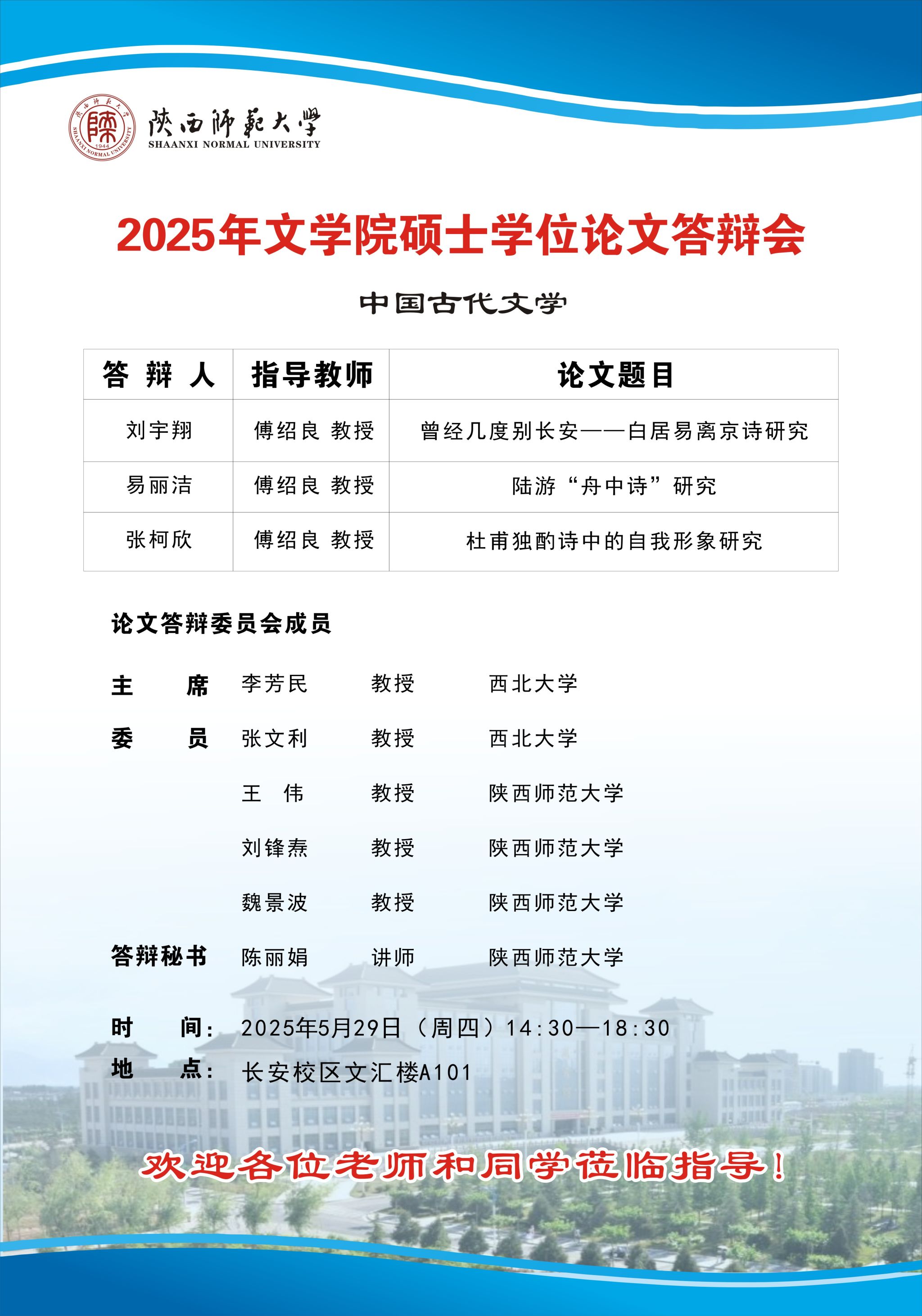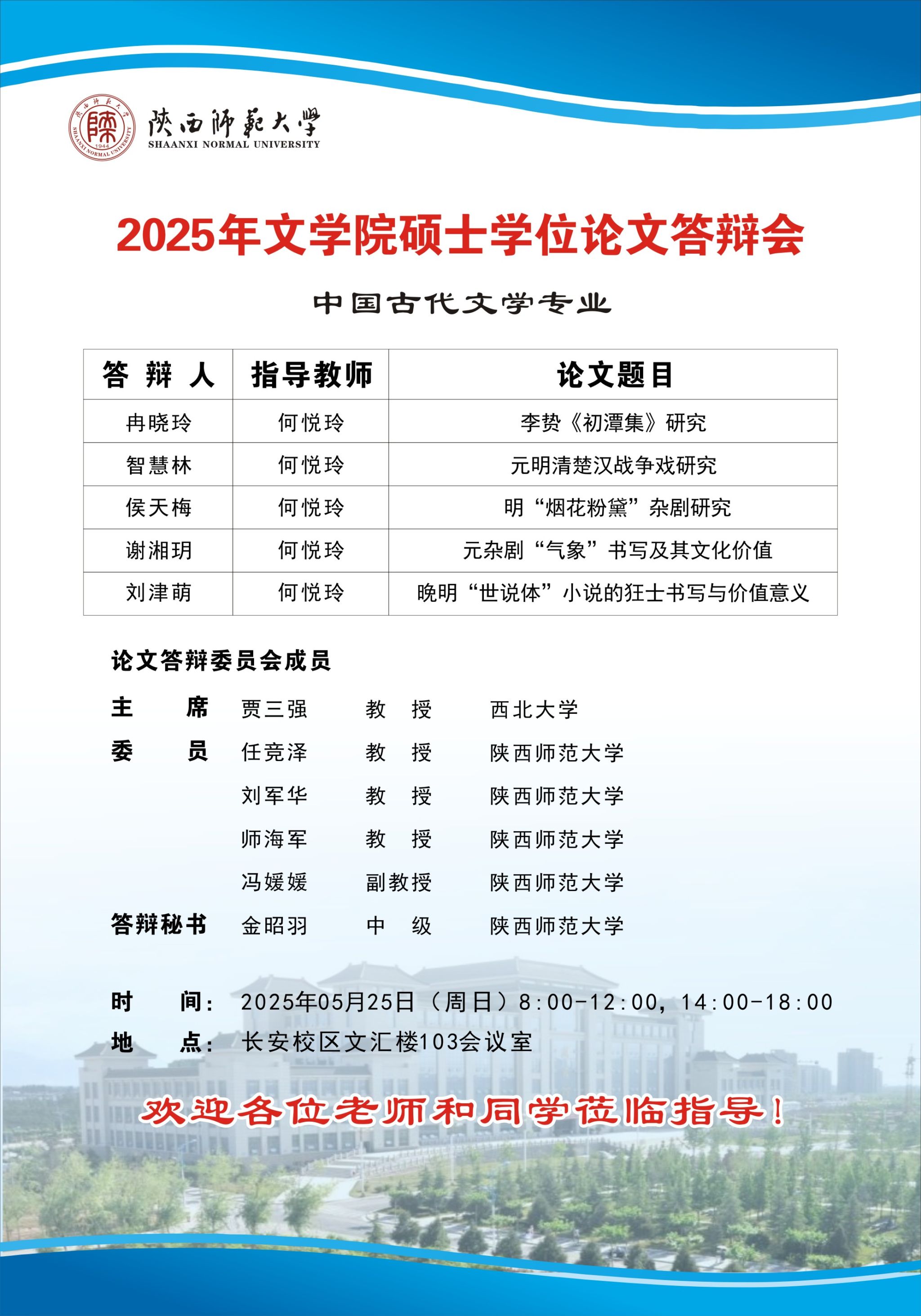 2025年上半年beat365硕士学位论文公开答辩会(中国古代文学专业)