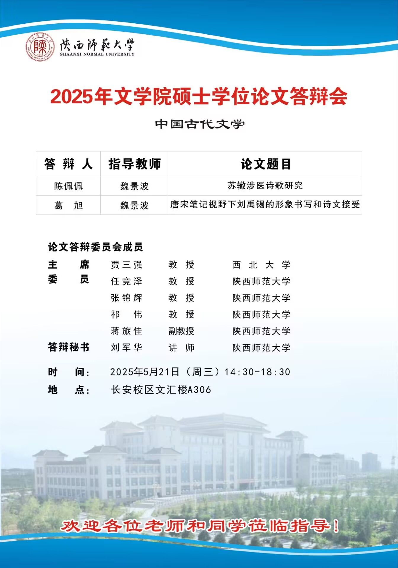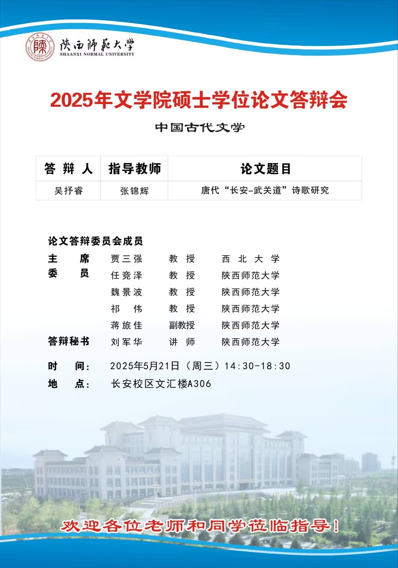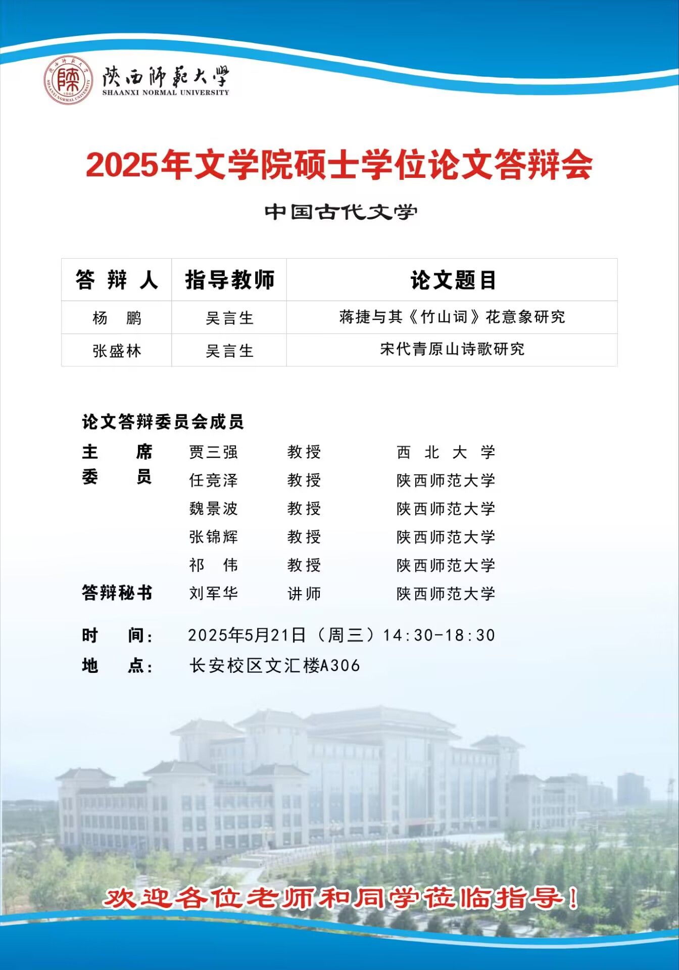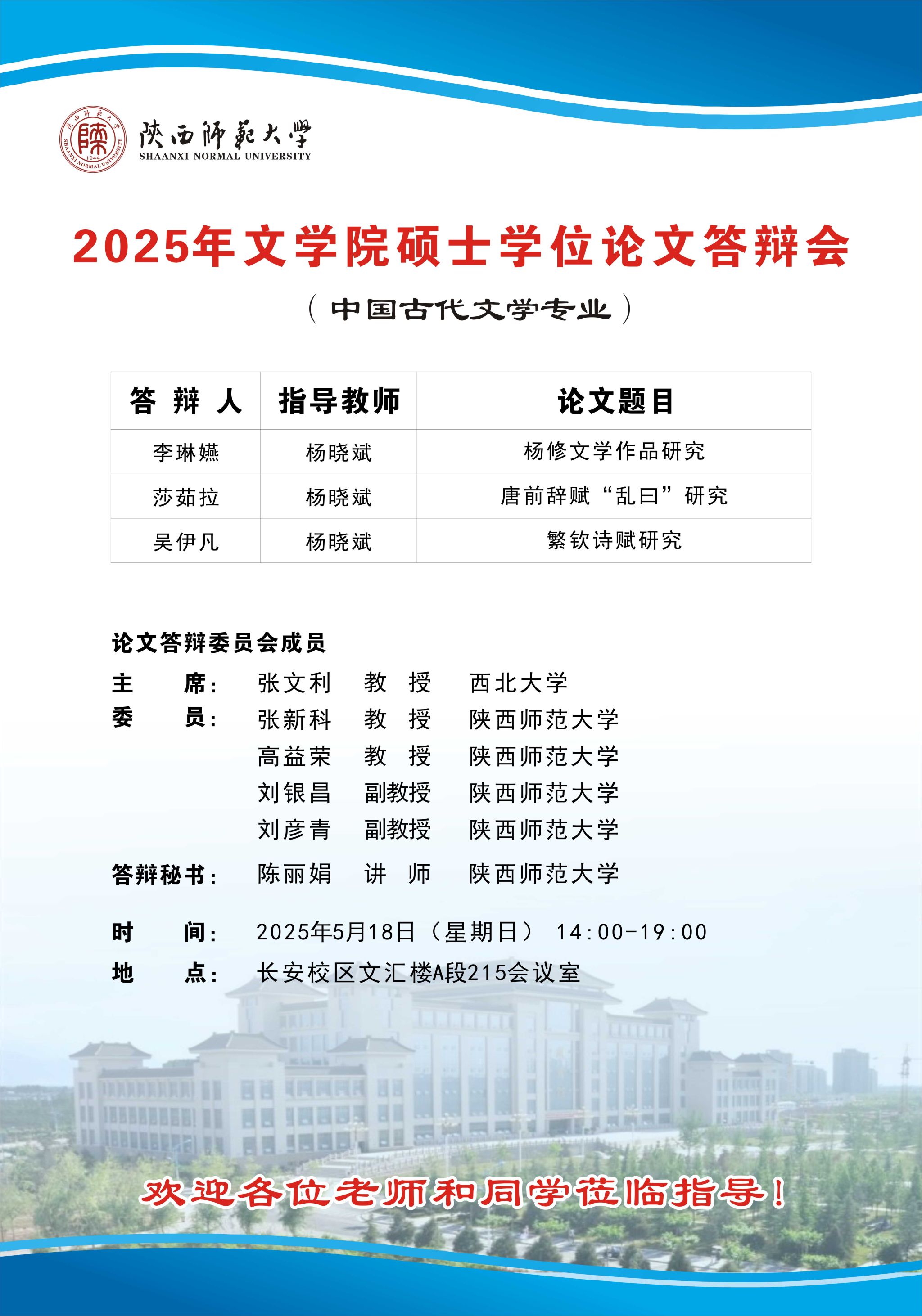 2025年上半年beat365硕士学位论文公开答辩会(中国古代文学专业)