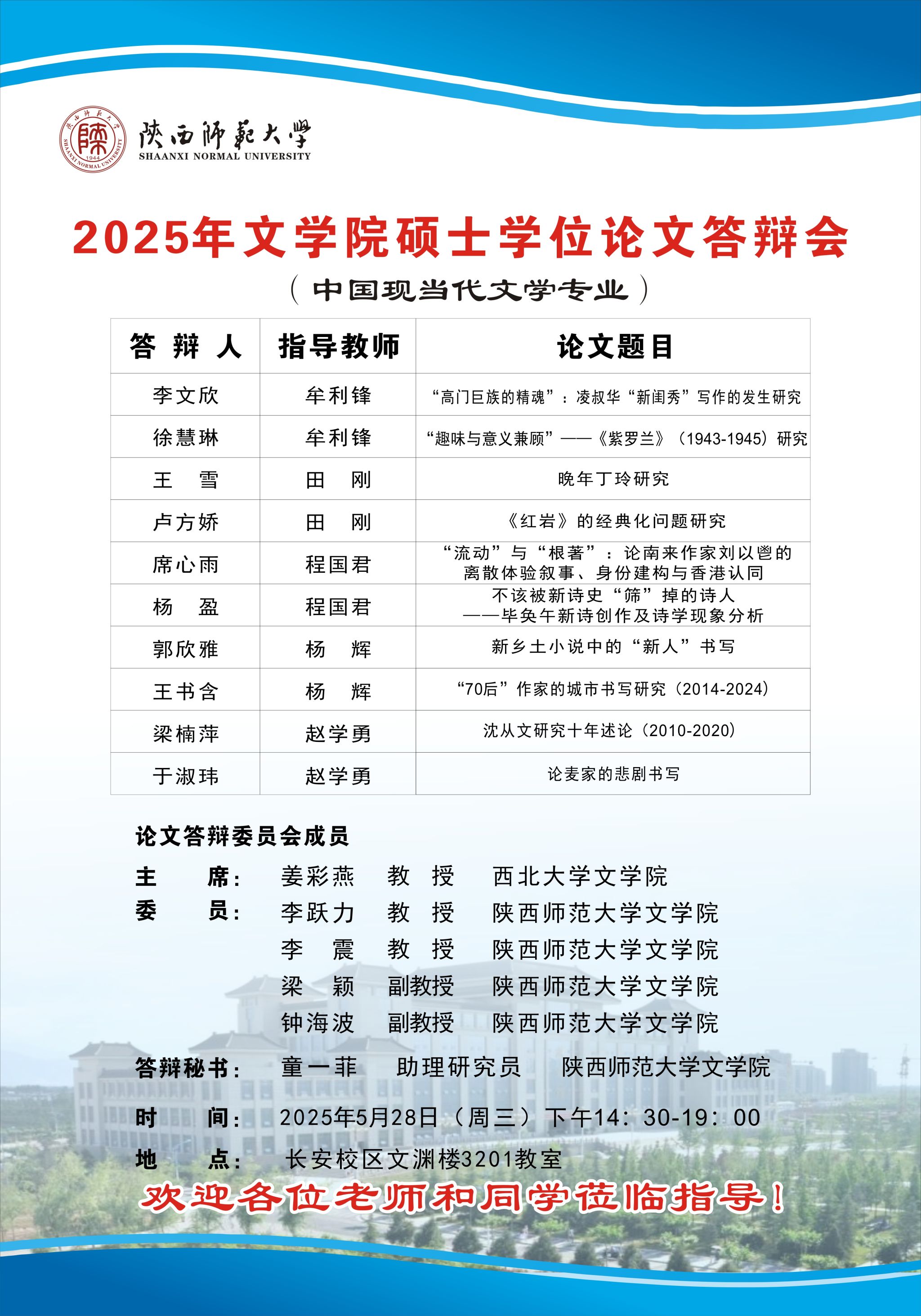 2025年上半年beat365硕士学位论文公开答辩会(中国现当代文学)