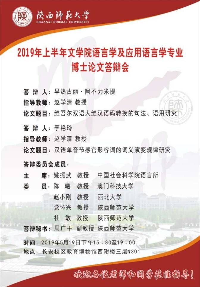 2019年上半年beat365语言学及应用语言学专业博士论文答辩会