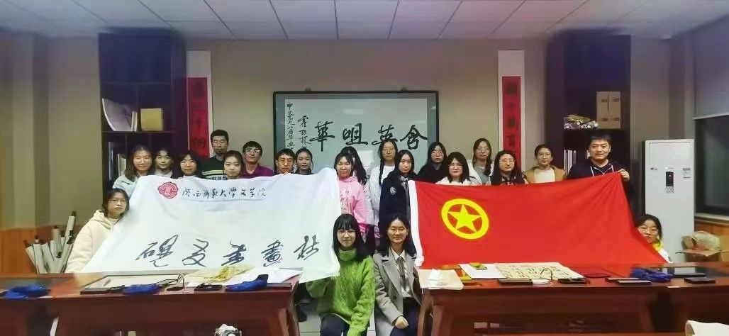 文明因交流而多彩,汉字因发展而璀璨。团支书以“坚定文化自信,秉人文之光守正创新”为重点,向同学们介绍汉字的演变历程,并分享了自己在学习书法中遇到的问题和解决方法,鼓励同学们在切身实践中探索汉字奥秘,感受深藏于翰墨笔画下的民族风骨,提出我们要坚定不移地传承汉字文明,阅读中华经典,坚定文化自信,将文明瑰宝“汉字”发扬光大。党的二十大报告为青年成长打开了更加宏阔的视野,勾画出更加美好的前景。我们书写汉字的过程,就是寻找民族情感、感受历史记忆、铭刻文化烙印,实现文化传承延续的过程。随后,伴随着秦风诗社饱有深情的吟诵,团支部成员围绕党的二十大精神,提笔书写青春之华章。