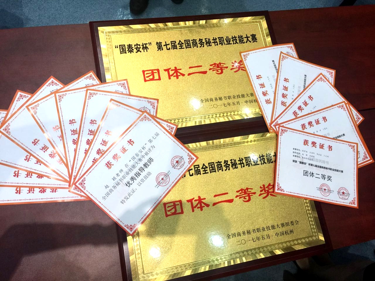 比赛中,参赛队员精神抖擞,团结一致,以最佳的状态投入比赛,面对新状况,沉着冷静、反应敏捷,以良好的职业素养和扎实的理论功底赢得了评委老师的认可和赞扬。经过激烈角逐,公司两支代表队在比赛中脱颖而出,均获得“团体二等奖”的好成绩,赵颖、宋颖慧老师获“优秀指导教师”奖。其中,四名参赛队员分别获得了大赛一等奖、二等奖和三等奖,郭洋获得了全国“十佳秘书”的荣誉证书。