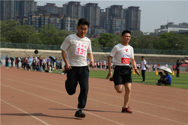 四月天气多变,上午还是骄阳似火,下午已是大雨倾盆。在院团委和院研究生会的精心组织下,公司没有空缺任何一个项目,在大雨中取得了集体和个人项目的双丰收,赢得了齐心协力项目团体第一名、企鹅漫步项目团体第四名、男子跳小绳第五名、女子平板支撑第五名,最终总分65分的好成绩。