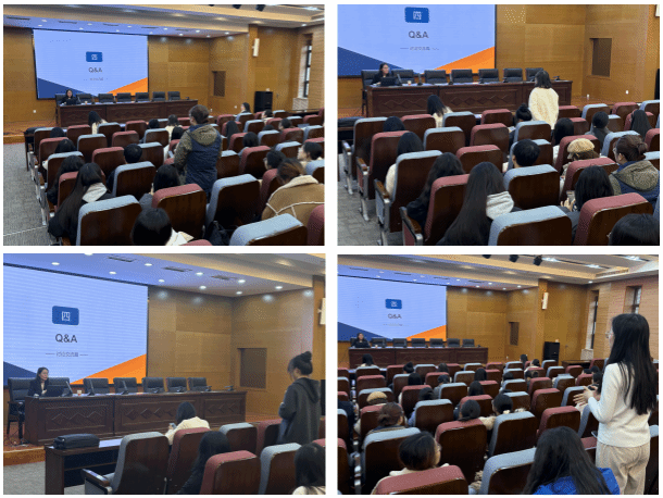 张艳艳围绕常见的求职法律风险及防范、劳动合同相关常识、实用的争议解决方法开展讲座。她通过真实案例,介绍了常见的四大求职陷阱,分享了应对策略,帮助大家提高风险防范能力。同时,她也结合法律条文对劳动合同进行详细解读,使同学们对劳动合同的必备条款、签订注意事项以及合同变更、解除和终止等相关法律规定有了更加深入的理解。在争议解决方法分享环节,她指出,在职场中遇到纠纷时,劳动者应首先通过协商、调解等方式寻求解决,必要时可以依法申请仲裁或提起诉讼。最后,张艳艳和同学们开展问答交流,现场气氛活跃。