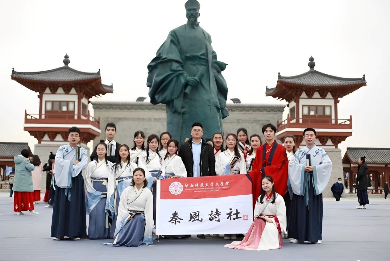 秦风诗社成立于2012年,以“体会诗词之美,推广传统文化”为宗旨,坚守校园文化阵地,传承吟诵艺术气质。在校内,诗社每周定期在长安、雁塔校区展开吟诵教学,定期参加每年的迎新晚会以及中华好诗词竞赛展演。在校外,2018年,诗社成员在共青团中央的号召下开展以“吟诵促推普,传统入新言”为主题的社会实践活动,助力推普脱贫攻坚战;2020年,诗社作为陕西省高校员工代表受邀参加“纪念张载诞辰1000周年—横渠书院开幕仪式”。先后获评2017-2018年beat365官方网站“共青团员先锋岗”、beat365官方网站十佳社团、全国优秀老员工国学社团等荣誉称号,成为beat365对外一张别具特色的名片。