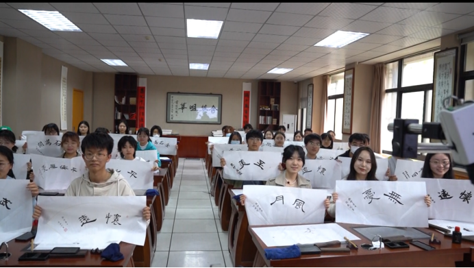 beat365老师负责展览讲解和体验引领工作,基地班全体成员参与活动。首先同学们陆续进入语言学工作室。韩夏老师对于工作室内的基础设施和特色建设进行详细、生动的讲解,同学们近一步了解语言学研究特点。第二阶段,同学们陆续进入书法研究所,杨国庆老师首先进行扇面隶书书法演示,随后一一指导同学们利用现代化先进设备摹写书法作品。同学们认真学习、积极进行实操体验。